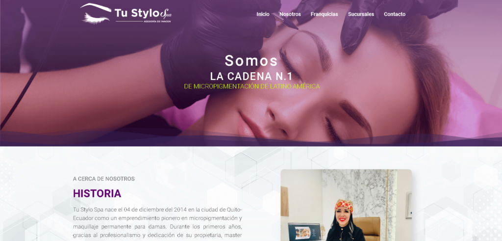 Tu Stylo Spa nace el 04 de diciembre del 2014 en la ciudad de Quito-Ecuador como un emprendimiento pionero en micropigmentación y maquillaje permanente para damas. Durante los primeros años, gracias al profesionalismo y dedicación de su propietaria, master Karina Urgilés, obtuvo gran acogida logrando su expansión a diferentes sectores de la capital. Ofreciendo un servicio de calidad y brindando oportunidades de crecimiento profesional a cientos de jóvenes ecuatorianos en el área de micropigmentación.